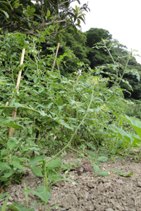 トマトの枝にスイカは絡むし、ゴーヤは絡むし、